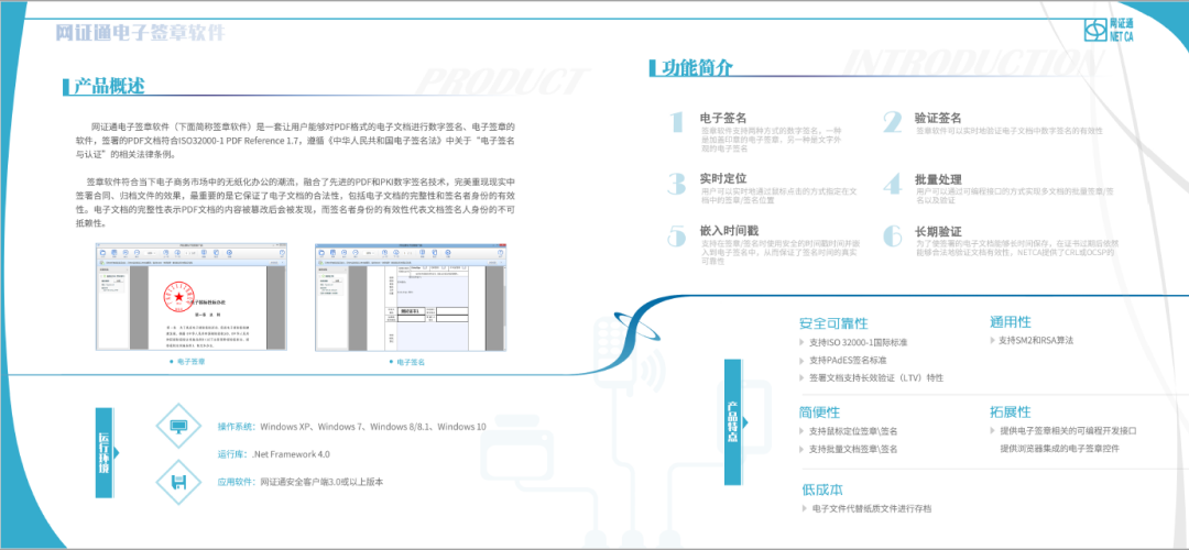 廣東省電子商務認證有限公司(簡稱:網證通NETCA)作為專業合法的第三方電子認證服務機構,具有電子政務電子認證服務資質、國家衛健委認可的衛生系統電子認證服務資質和粵港電子簽名互認資質,圍繞密碼技術CA數字證書產品應用研發了電子簽章、電子憑證、認證授權、簽名驗簽和時間戳服務等系列產品。網證通的電子簽章服務主要利用數字簽名和時間戳等密碼技術,確保電子簽章無可偽造、不可抵賴、簽署過程留痕可追溯,確保真實可信并具有法律效力,這種符合法律規定、與手寫簽名或實體印章有同等法律效力的電子簽名/簽章代替傳統印章,通過加密存儲和傳輸技術結合實名身份驗證,從而杜絕相關業務流程中可能存在的漏洞。