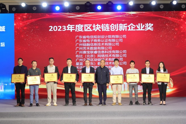 區塊鏈技術作為一種分布式、不可篡改的數字賬本技術,正逐漸成為智慧城市建設中的重要組成部分在本次博覽會開展的以“數字引領、智慧賦城”為主題的“2023粵港澳大灣區智慧城市產業領袖論壇”上,網證通從“智慧賦城”的角度智慧城市建設中區塊鏈技術的應用與相關部門領導、專家學者、技術大咖、知名企業家和眾多企業高管代表等產業領袖展開探討、分享觀點、交流思想、碰撞商機、共謀發展、達成合作共識。因在數字技術應用和智慧城市建設領域中發揮了典范引領作用,網證通榮獲廣東省云計算協會、廣東省高新技術企業協會和中國(大灣區)智慧城市大會組委會聯合頒發的“2023年度區塊鏈創新企業獎”,網證通執行董事胡文聰榮獲“2023年度區塊鏈創新人物獎”。